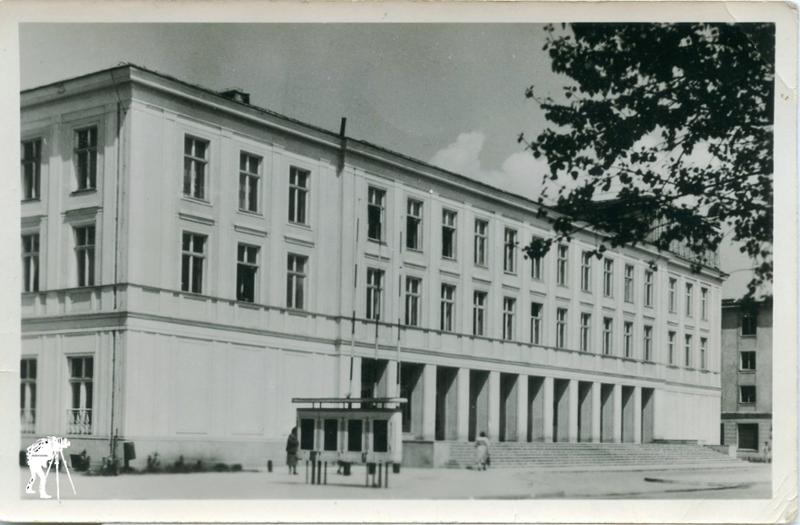 Pocztówka przedstawia widok na budynek Domu Kultury w Mielcu.